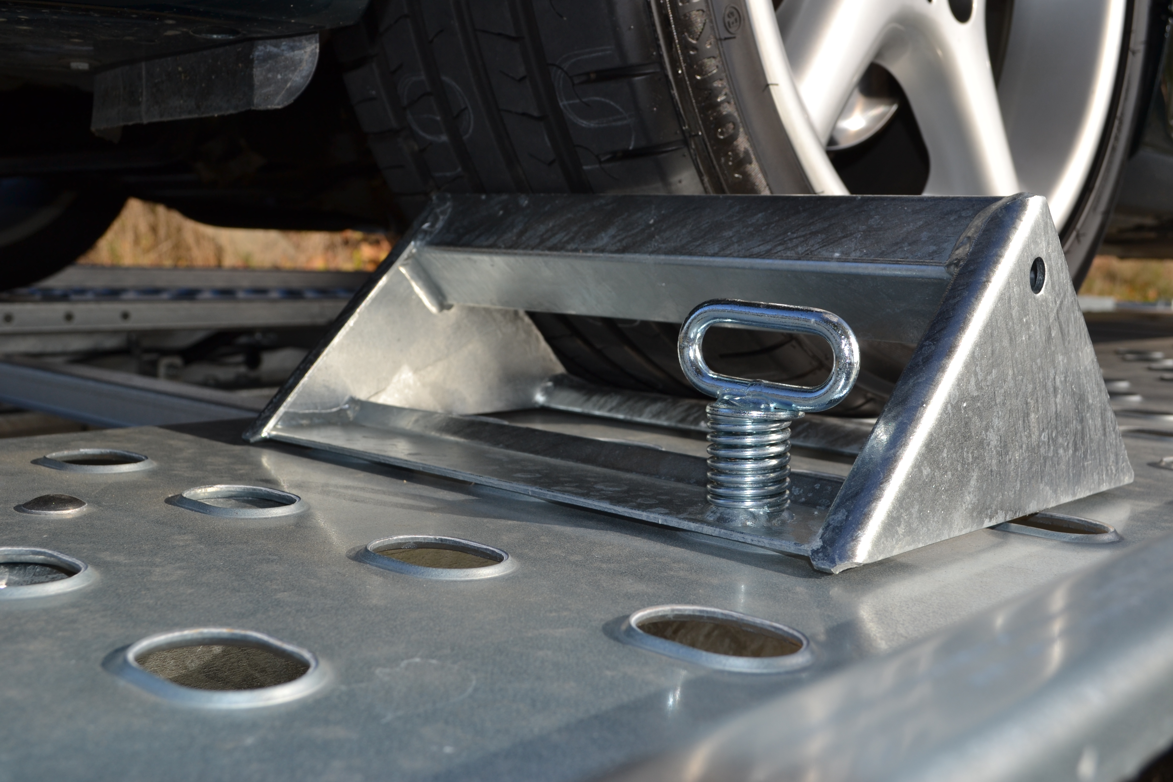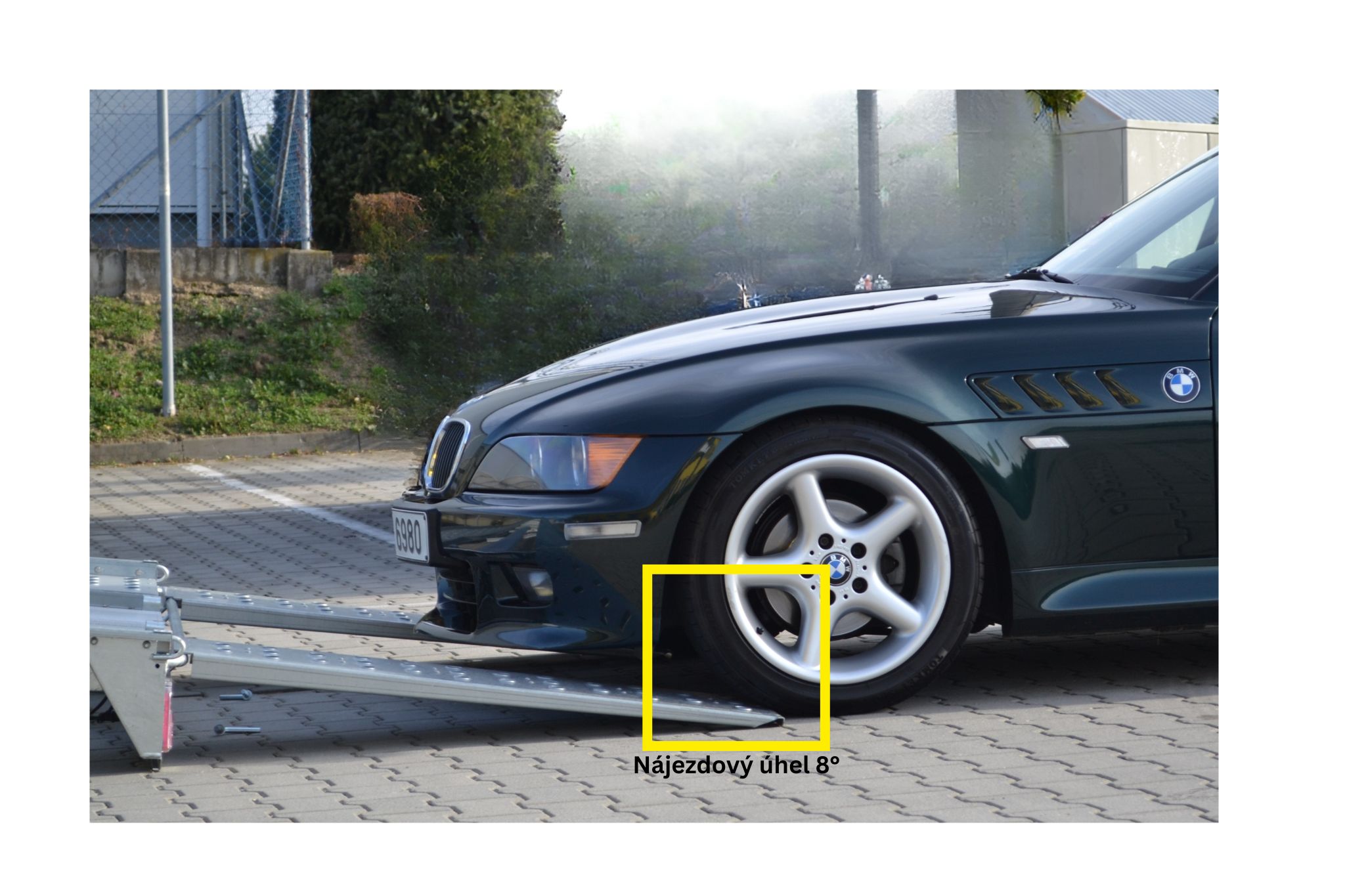 Prevedenie s „V“ ojom, sklopná korba pre ľahší výjazd – vybavená plynovými tlmičmi pre bezpečnejšie a komfortnejšie sklápanie. Podlaha tvorená lyžinami s prednými posuvnými dorazmi. Oceľové nájazdy uložené v ložnej ploche. Nájazdy možné posúvať po celej šírke prívesu a majú nájazdový uhol 8°. Príprava na navijak s uchytením na ľavú aj pravú stranu. 10“ kolesá, 13 pólová elektroinštalácia. Náprava a brzdový systém od značky KNOTT.